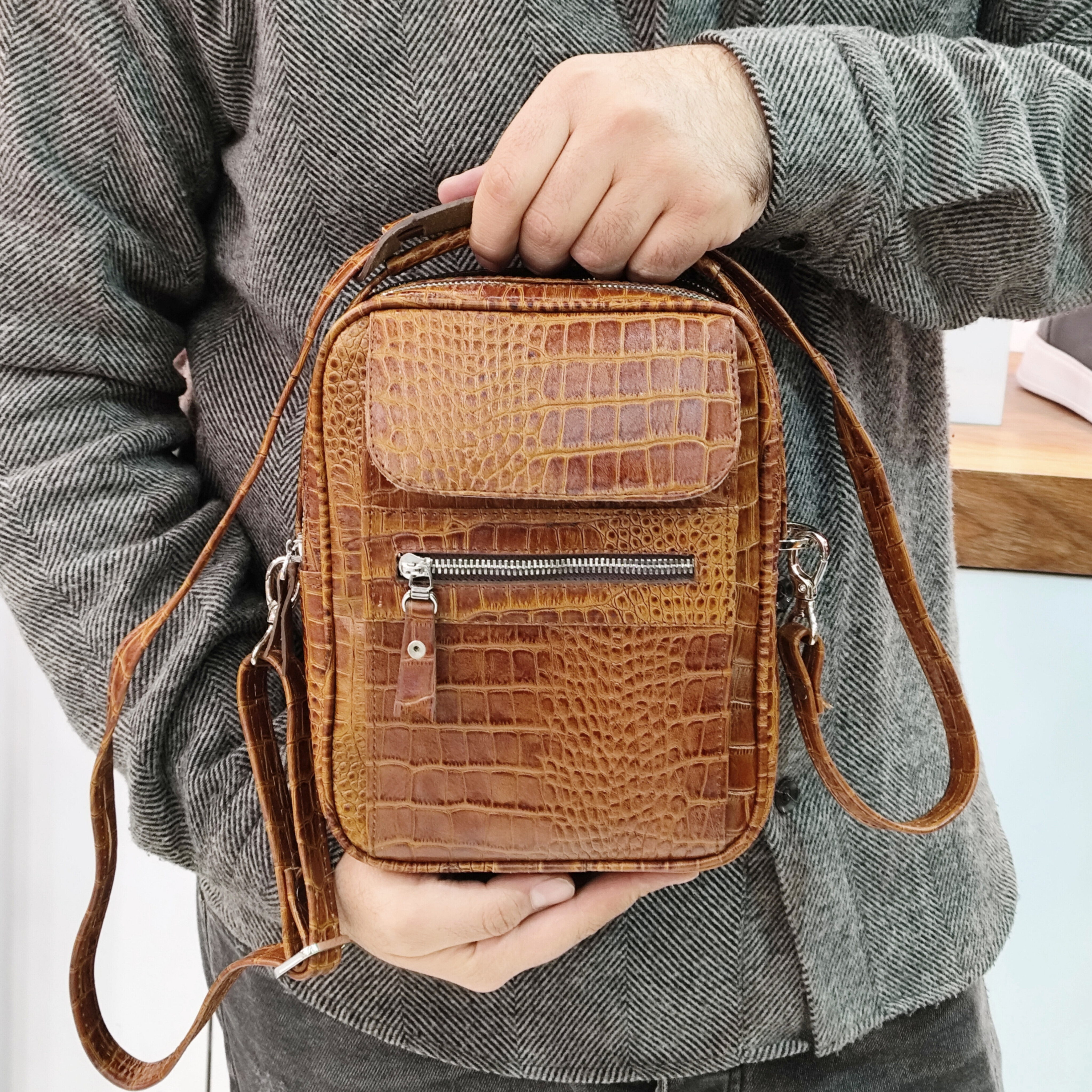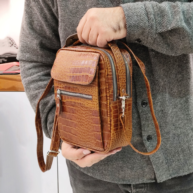 کیف دوشی و دستی و چرم مردانه و زنانه رویه کار چرم گاوی چاپ روکو کار شده داخل کار از اشبالت طبیعی گاوی و آستر سوییت کار شده یراق آلات فلزی خارجی رنگ ثابت می باشد دارای بند دوشی چرم دولایه مناسب استایل های رسمی و نیمه رسمی ، دارای زیپ فلزی ژاپنی و جای موبایل انواع اقسام مدارک را میتوان باهاش به همراه داشت