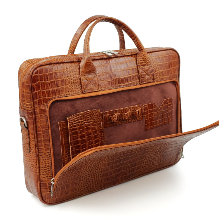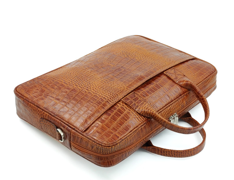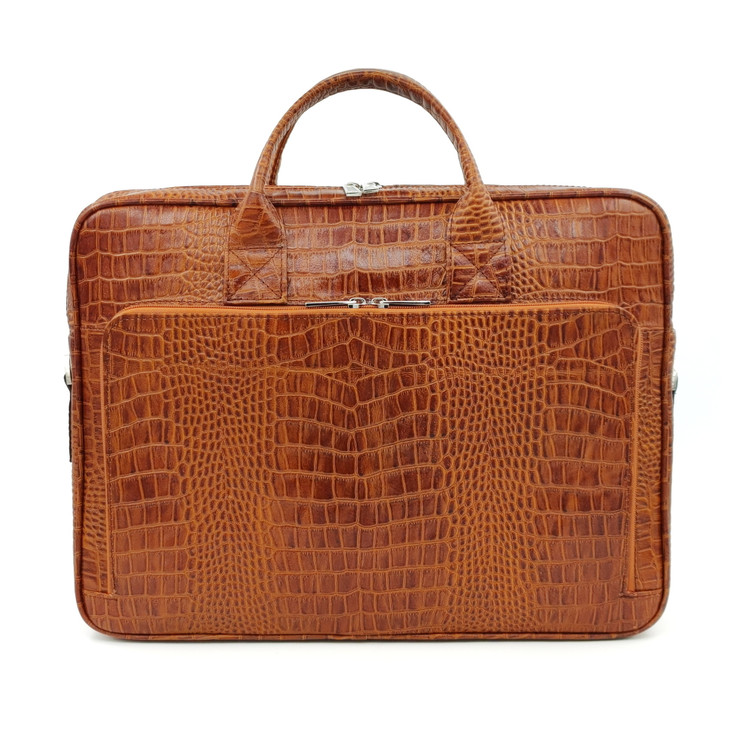 کیف اداری تمام چرم گاوی چاپ کروکودیلی دارای ضریه گیر لپ تاپ رنگبندی: مشکی ، عسلی سیر